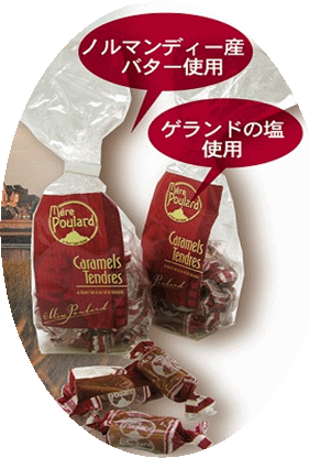 DATA世界遺産『モン・サン・ミシェル』から届いた今話題の本格塩キャラメル!品種−味わい甘口:口に入れた瞬間、バターの濃厚な香りで口が一杯☆容量100g産地フランス288個本 完売72個 追加しました(2009.3.10)ここのところ「キャラメル」が大ブーム!××牧場の生キャラメルが「旨い!」と超話題ですがコレがまたなかなか手に入らないんですよねぇ・・・・・だからというワケではないんですが(笑)、素敵なキャラメルを見つけたんです!見つけただけではなく、手に入れたんです!☆フランスの有名地モン・サン・ミシェル☆三ツ星レストラン「メール・プラール」の『プラールおばさんのブティック』で売られている★やわらかキャラメル★世界遺産『モン・サン・ミシェル』の麓にあるノルマンディースタイルのホテル ラ・メール・プラール。